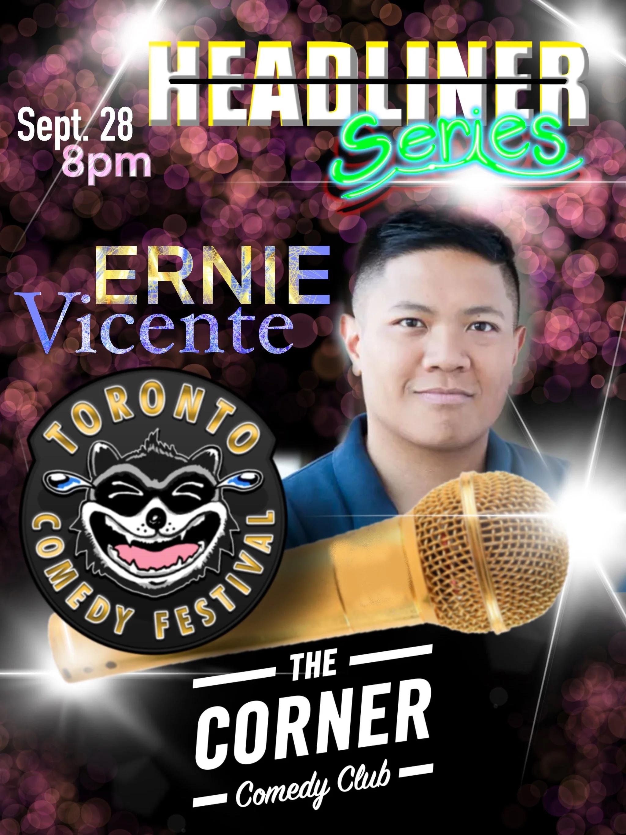 Don't miss Ernie Vicente headlining at 8 PM on September 28th—it's going to be a night filled with comedy that you won’t soon forget!
